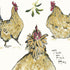 A Christmas card illustrated with three french hens, some mistletoe and the hand written text ‘Three French Hens’.