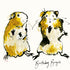 A birthday card illustrated with two funky guinea pigs and the handwritten text ‘Birthday Boogie’.