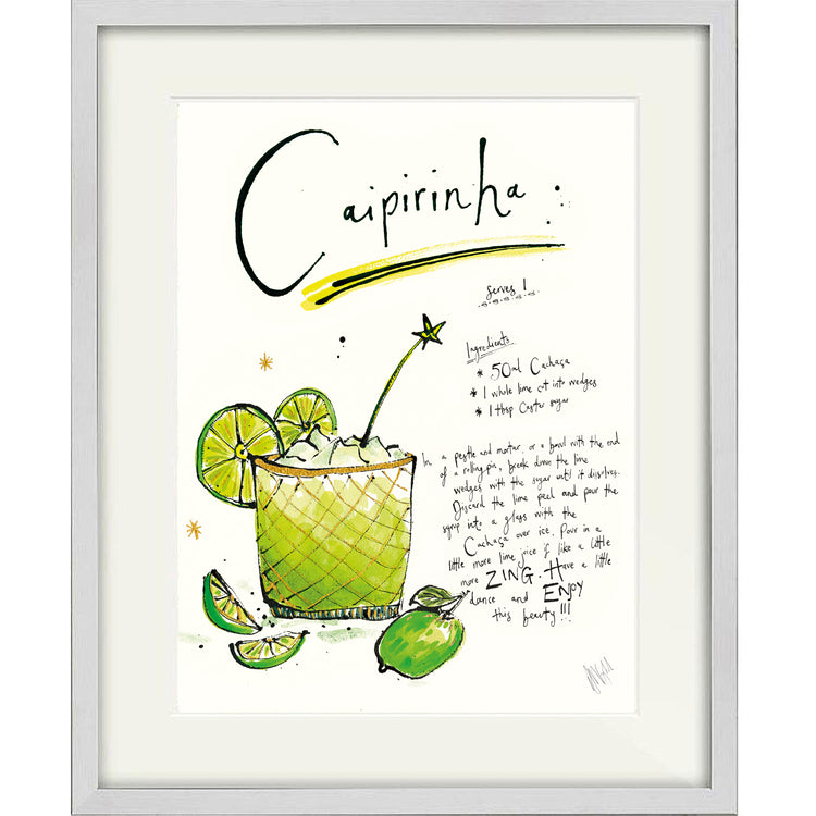 A high-quality giclee print of a zesty Caipirinha cocktail with the recipe written in Anna's characterful handwriting so that you can whizz, shake and stir up your own to try...