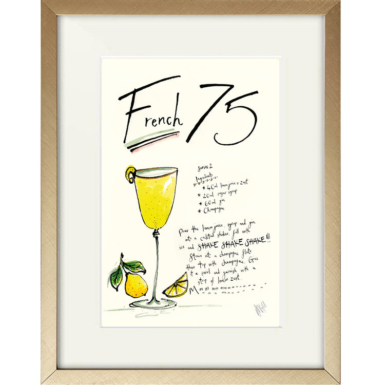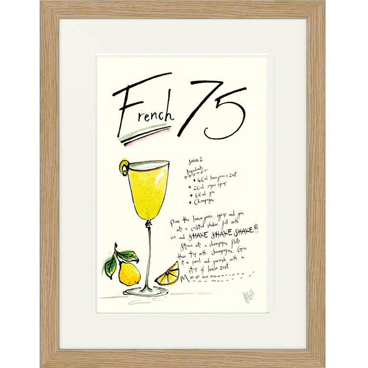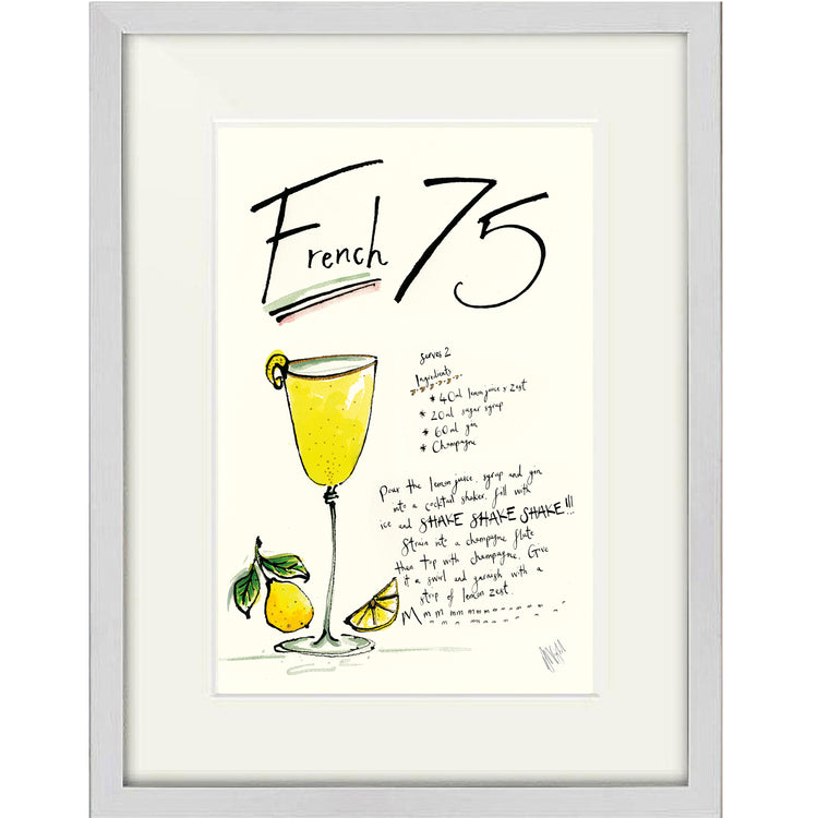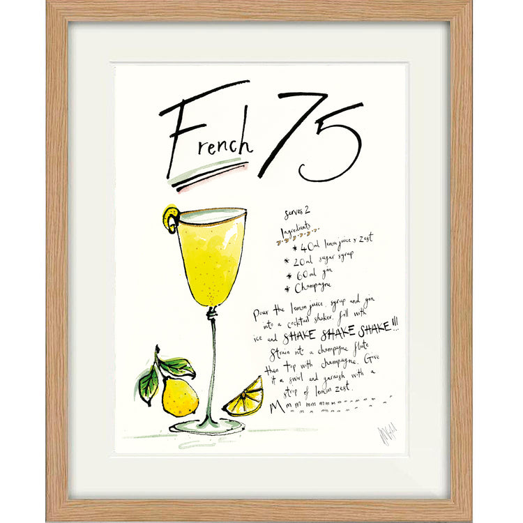 A high-quality giclee print of a fizzy French 75 cocktail with the recipe written in Anna's characterful handwriting so that you can whizz, shake and stir up your own to try...