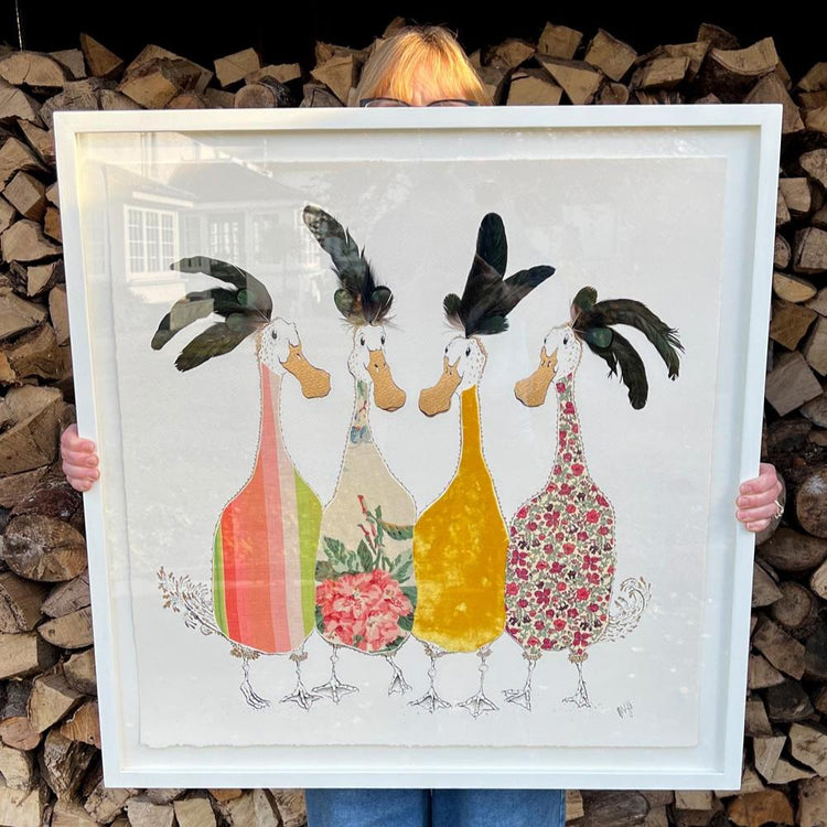 This original artwork has been produced using Indian ink, acrylic paint, fabric and sustainably sourced feathers on heavy-weight acid-free watercolour paper. Signed by Anna and supplied with a Certificate of Authenticity.