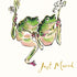 A gold foil embossed marriage card illustrated with two delightfully content frogs and the handwritten text ’Just Married'.