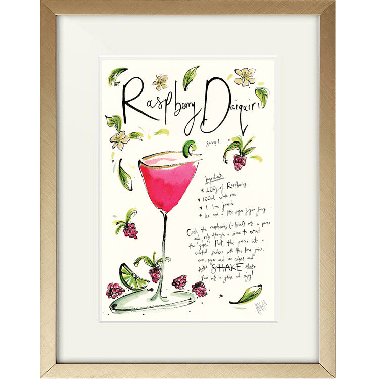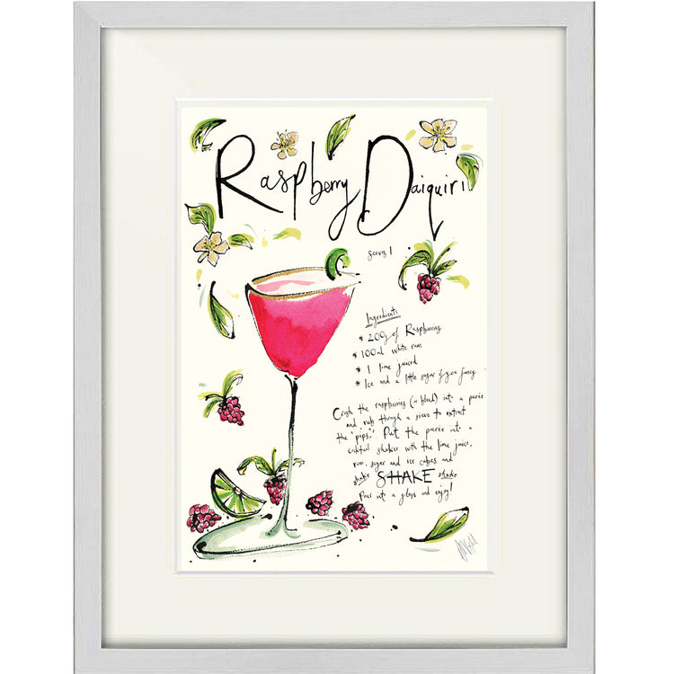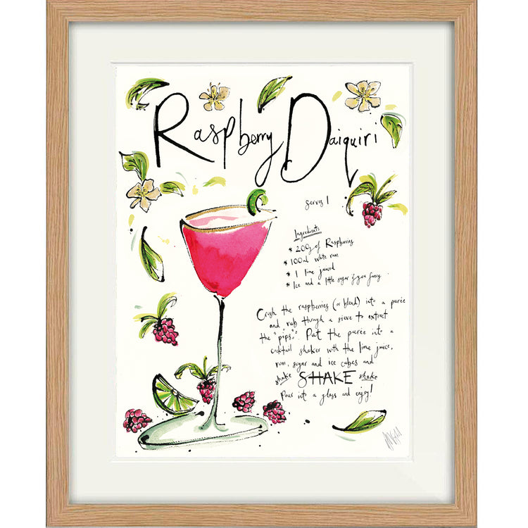 A high-quality giclee print of a fruity Raspberry Daiquiri cocktail with the recipe written in Anna's characterful handwriting so that you can whizz, shake and stir up your own to try...