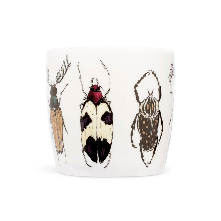 A fine bone china mug made in the UK. Illustrated with with an array of colourful bugs on the outside, the handwritten text ‘The Bug Mug’ on the inside of the lip and colourful bug inside on the base, so there’s a wee surprise when you finish your cup of tea…