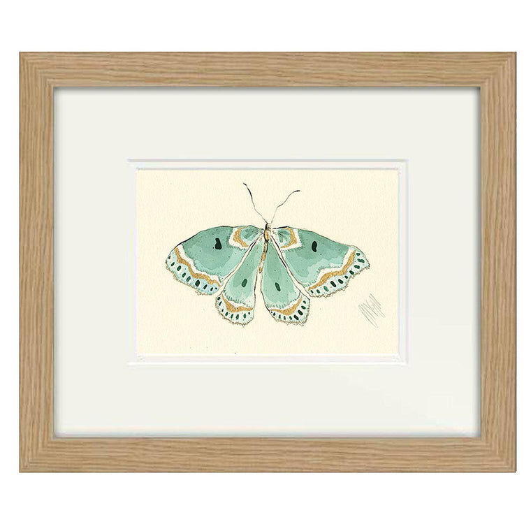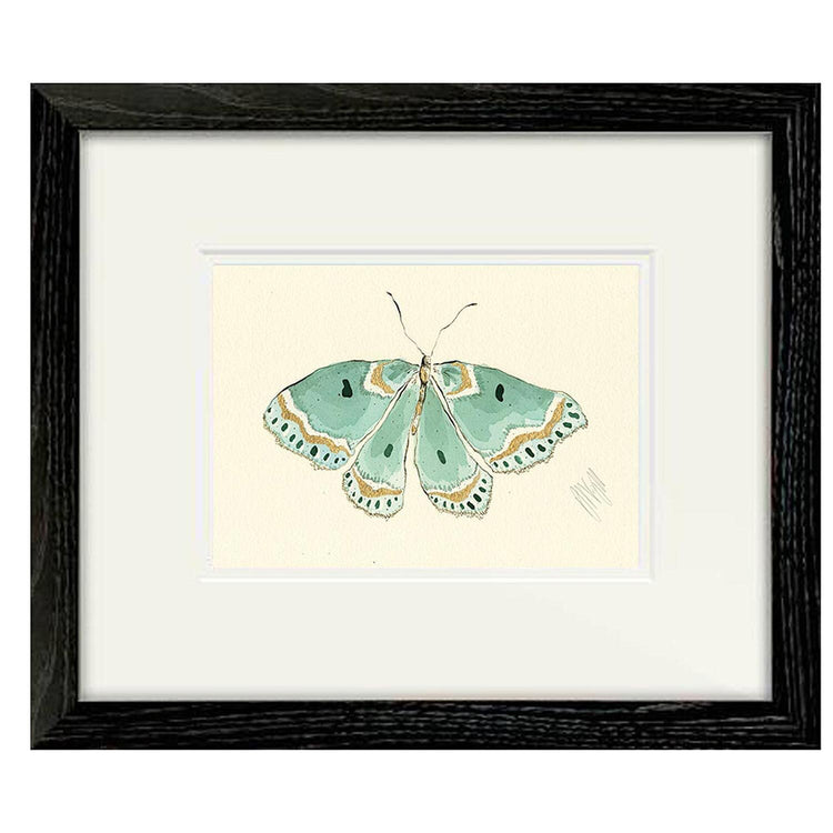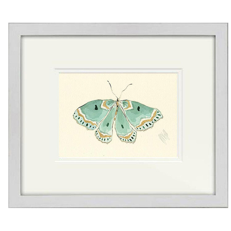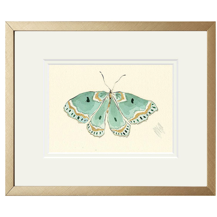A high-quality giclee print of a turquoise Butterfly with golden highlights.