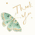 A gold foil embossed thank you card illustrated with a turquoise butterfly and the handwritten text ‘Thank You’.