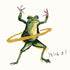 A greetings card illustrated with a hula hooping frog and the handwritten text ‘Work It!’.