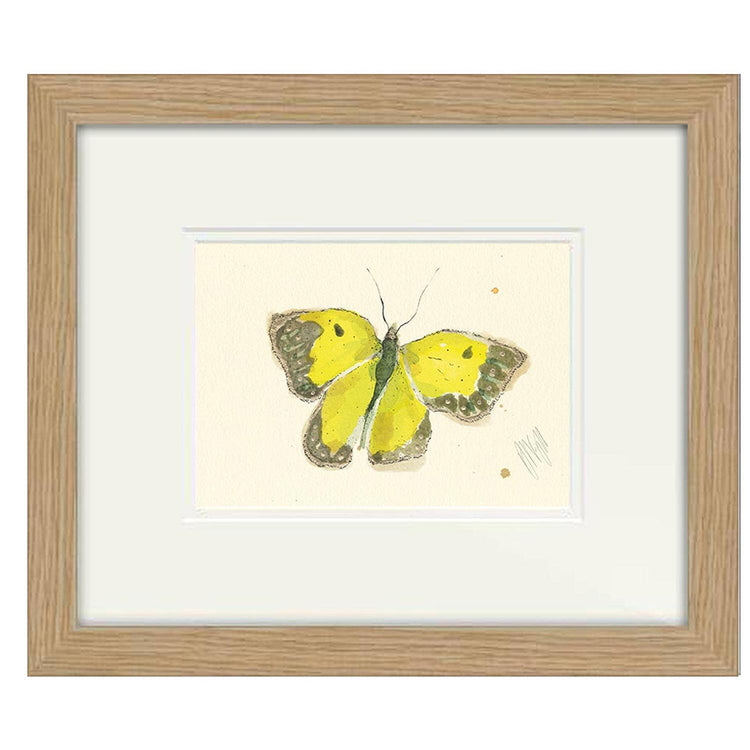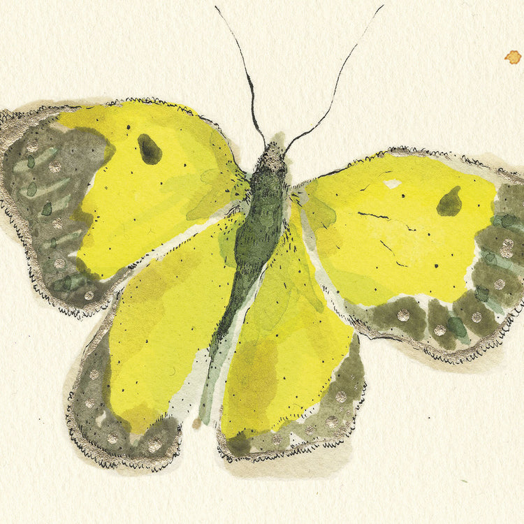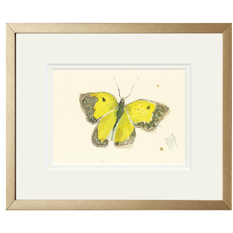 A high-quality giclee print of a yellow Butterfly with golden highlights.