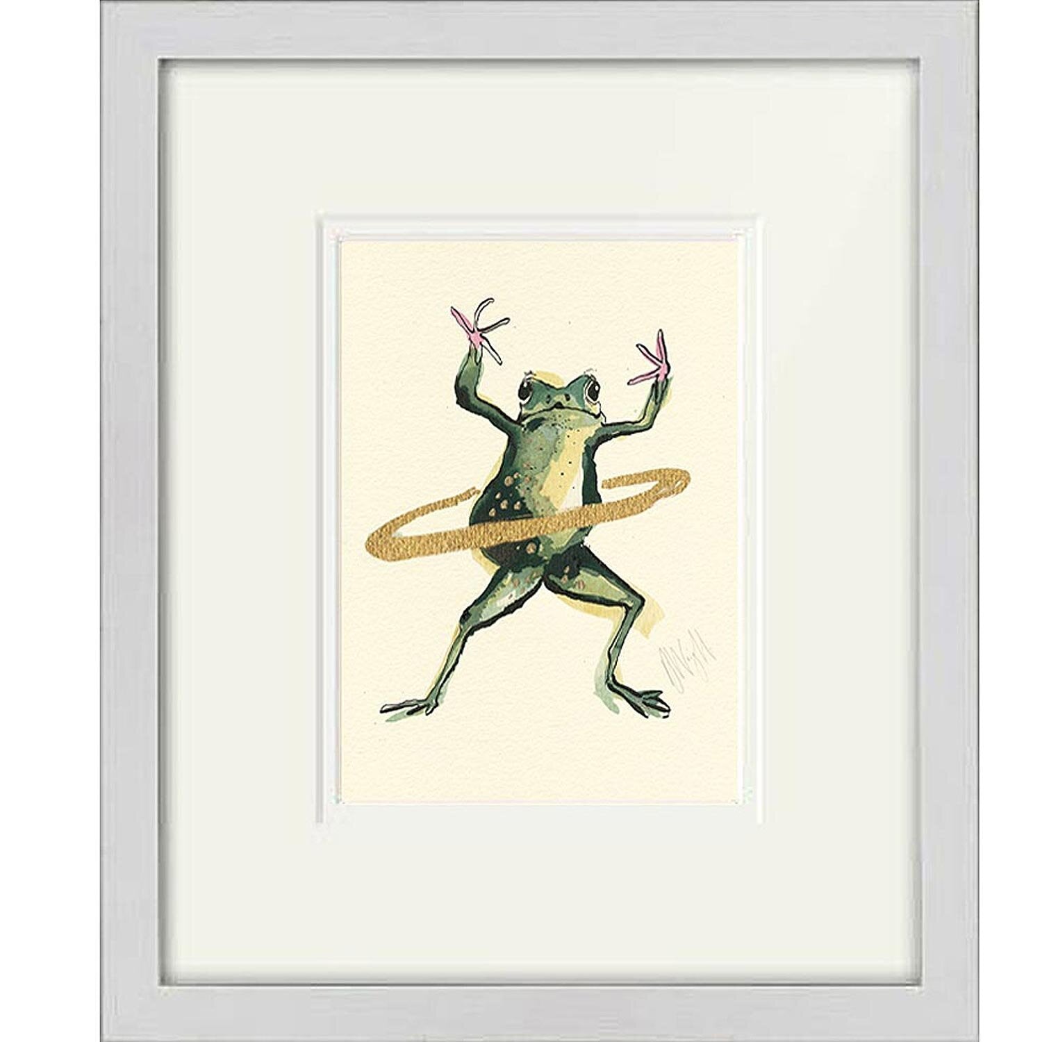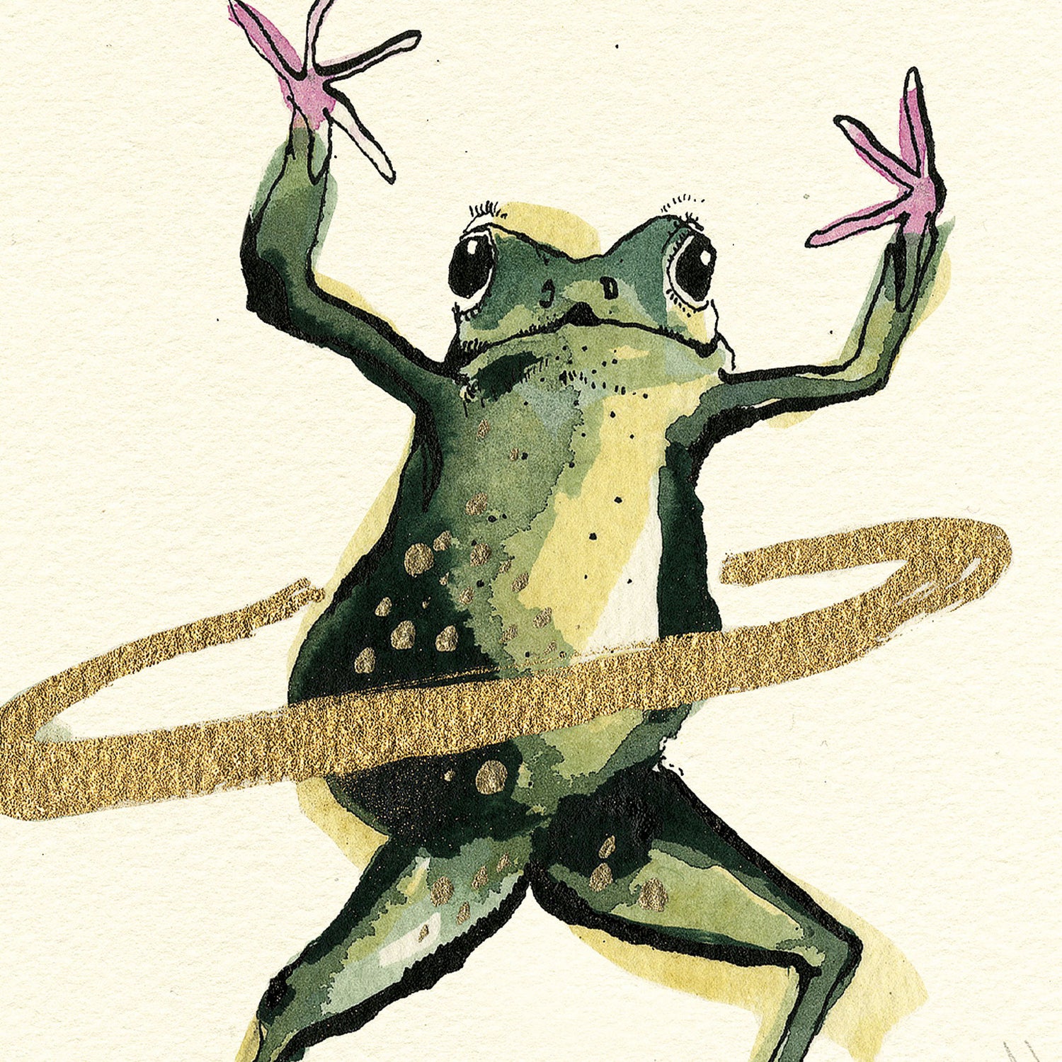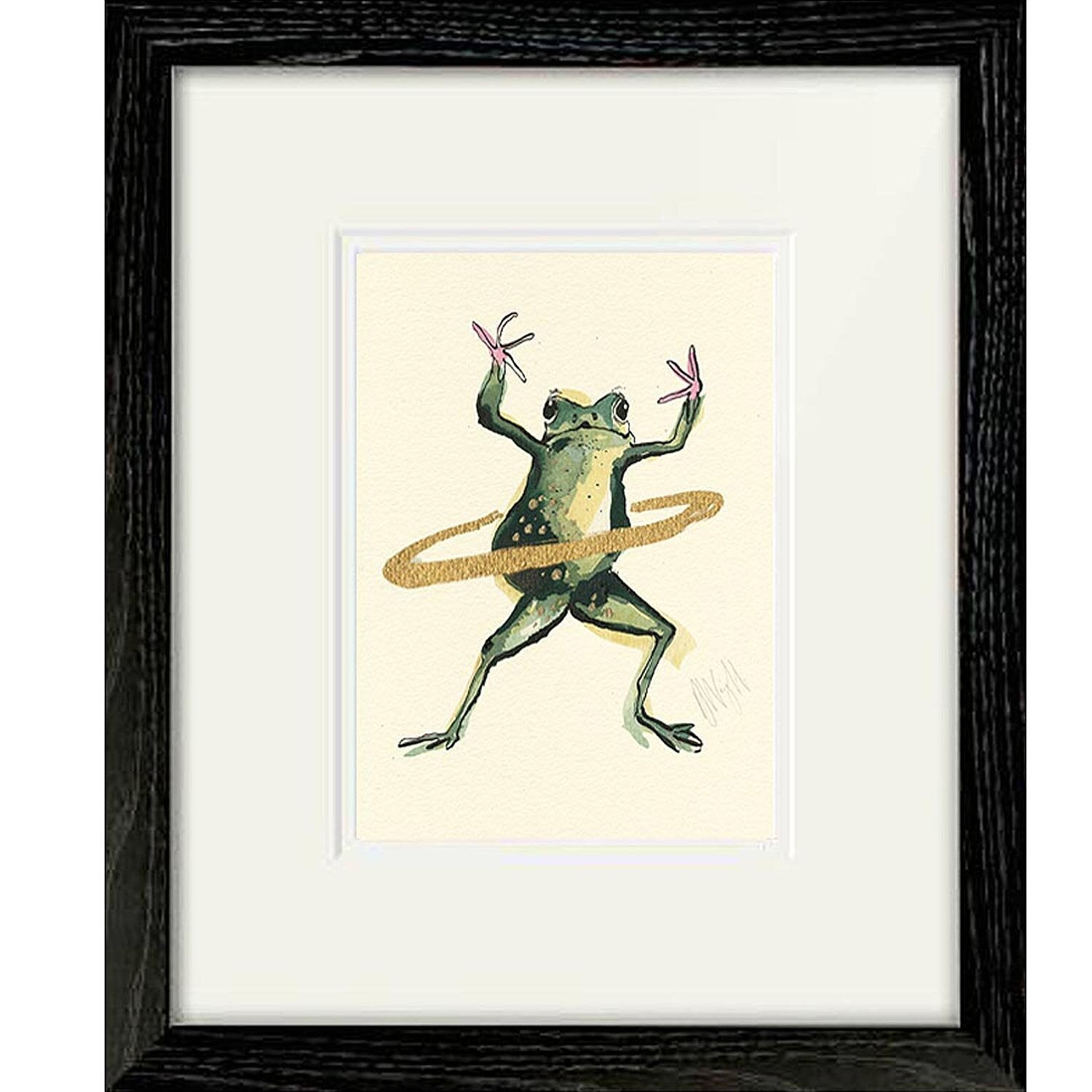 A high-quality giclee print of a hula hooping Frog.