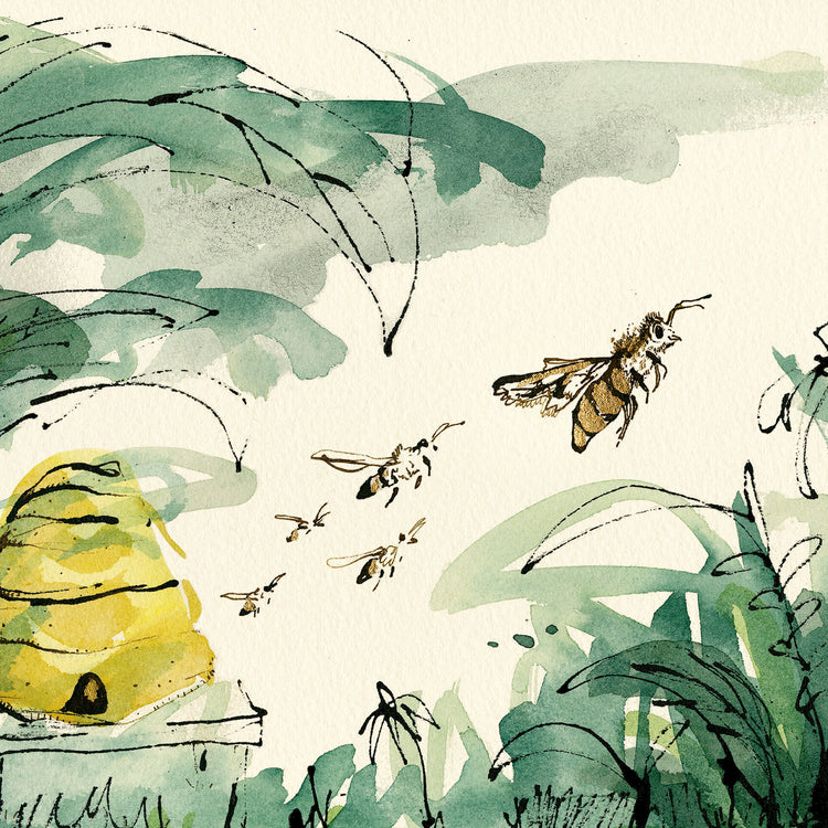 Reproduced from an original artwork by Anna. Hand-drawn and painted with Indian ink, watercolour and acrylic paint.