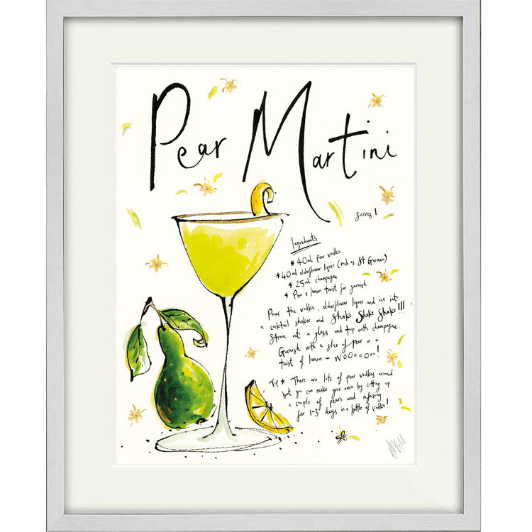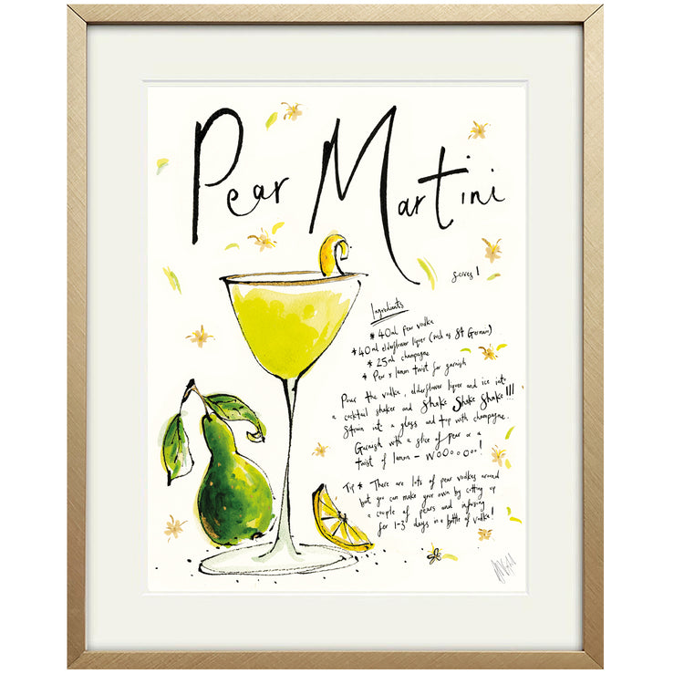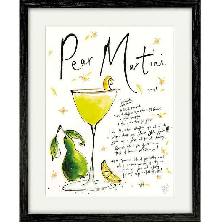 A high-quality giclee print of a fruity Pear Martini cocktail with the recipe written in Anna's characterful handwriting so that you can whizz, shake and stir up your own to try...