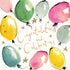 A gold foil embossed birthday card illustrated with a celebration of colourful balloons and the handwritten text ’Congratulations and Celebrations’.
