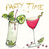 A gold foil embossed celebration card illustrated with a zesty Mojito and a cool Cosmopolitan cocktail and the handwritten text ’PARTY TIME’.