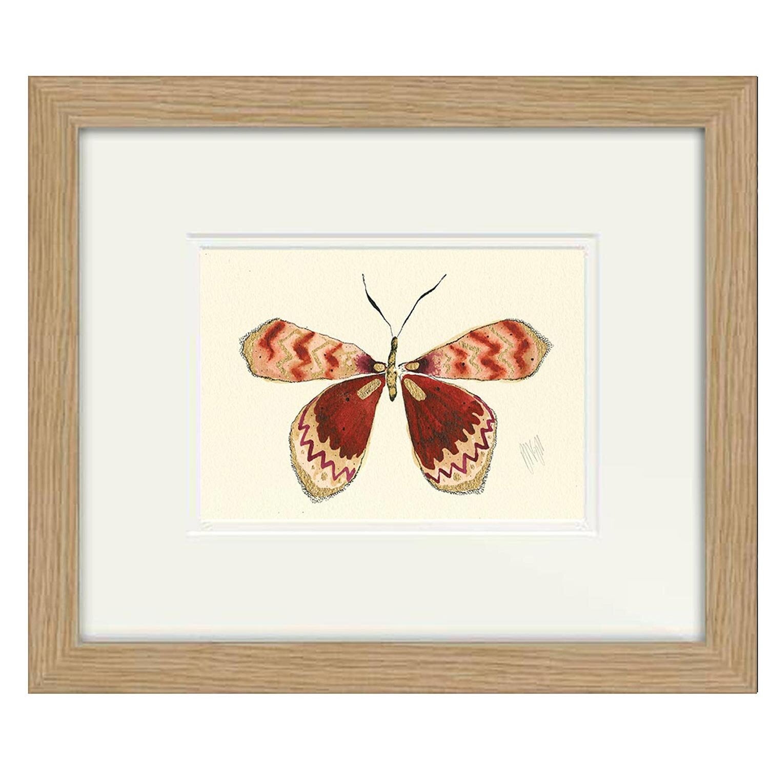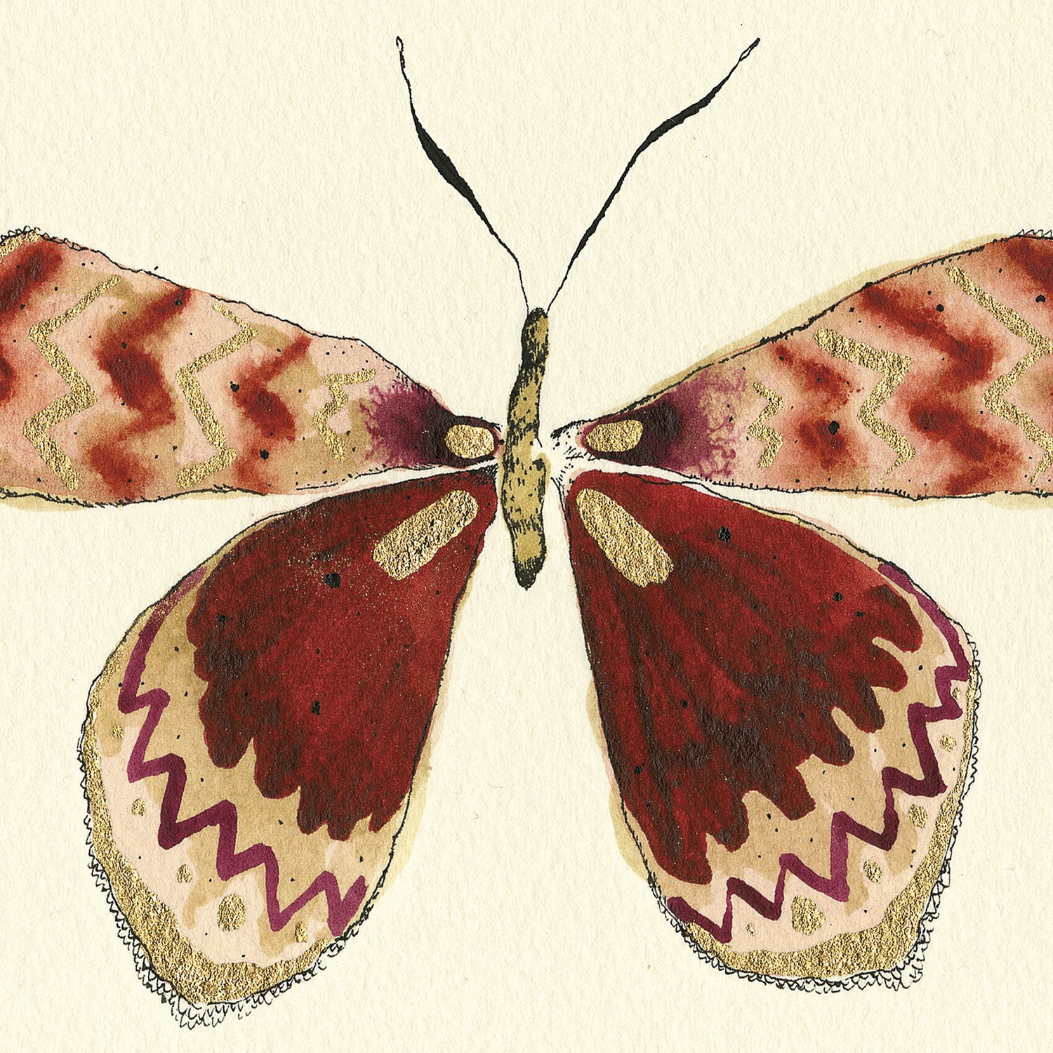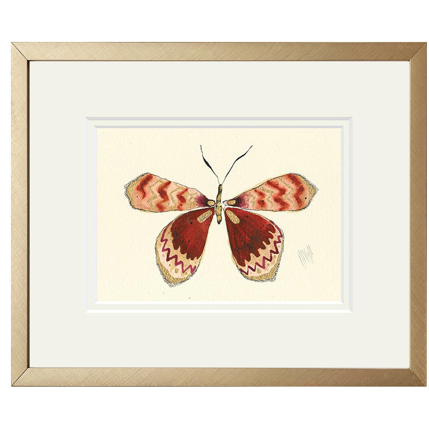 A high-quality giclee print of a patterned amber Butterfly with golden highlights.