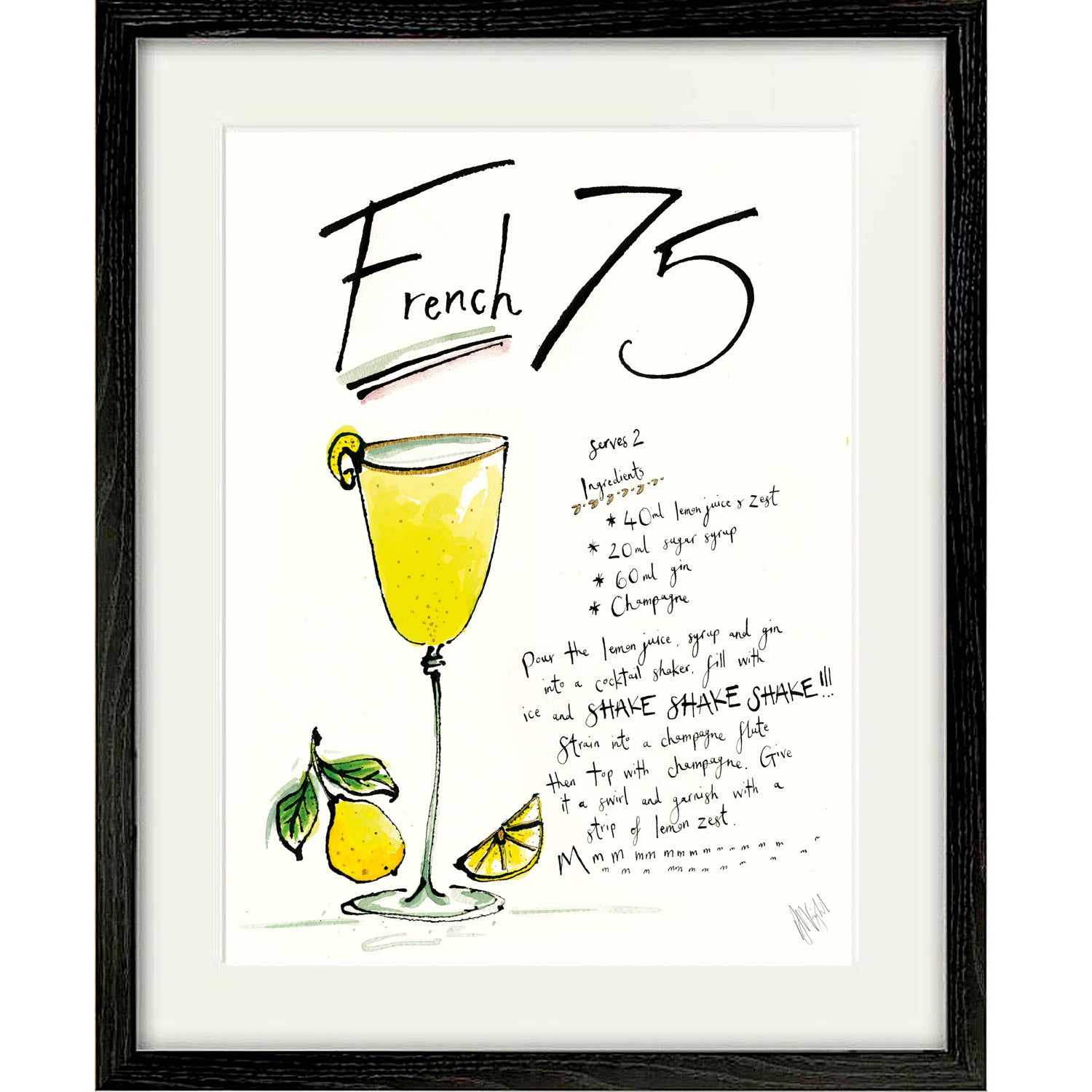 A high-quality giclee print of a fizzy French 75 cocktail with the recipe written in Anna's characterful handwriting so that you can whizz, shake and stir up your own to try...