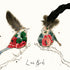A greetings card illustrated with two beautiful, feather topped, birds and the handwritten text ‘Love Birds’.