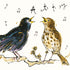 A greetings card illustrated with a two happy singing Blackbirds and the handwritten text ‘A note to say’.