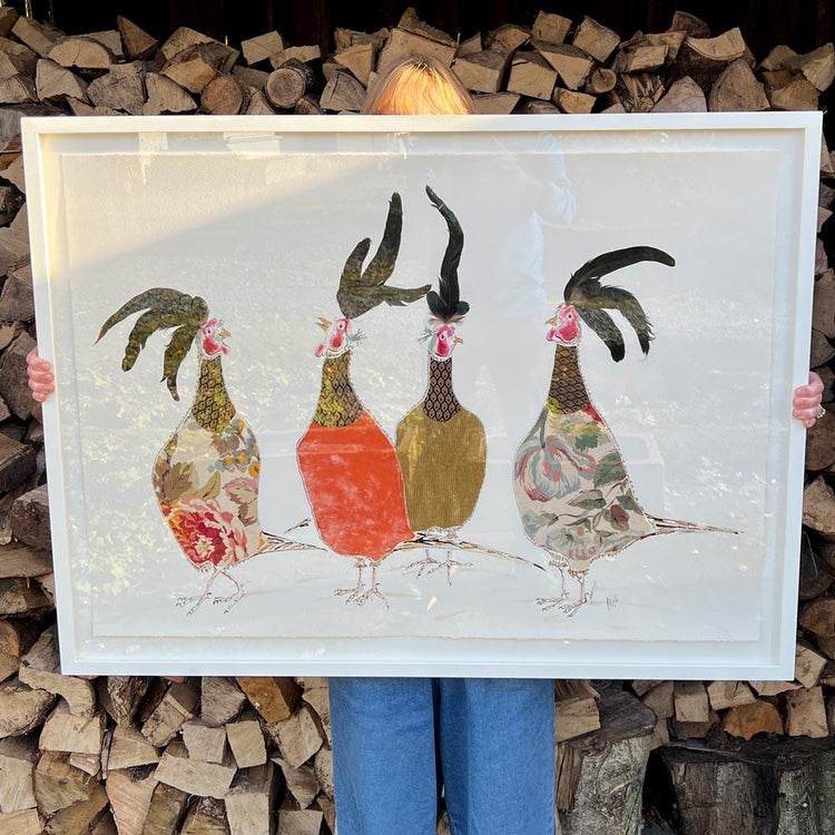 This original artwork has been produced using Indian ink, acrylic paint, fabric and sustainably sourced feathers on heavy-weight acid-free watercolour paper. Signed by Anna and supplied with a Certificate of Authenticity.
