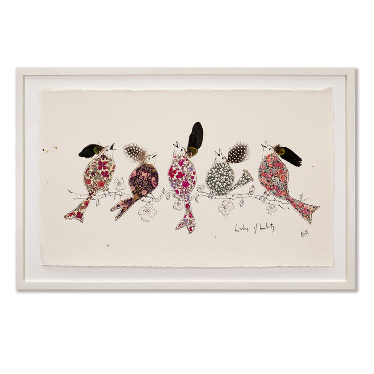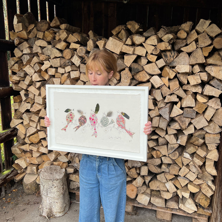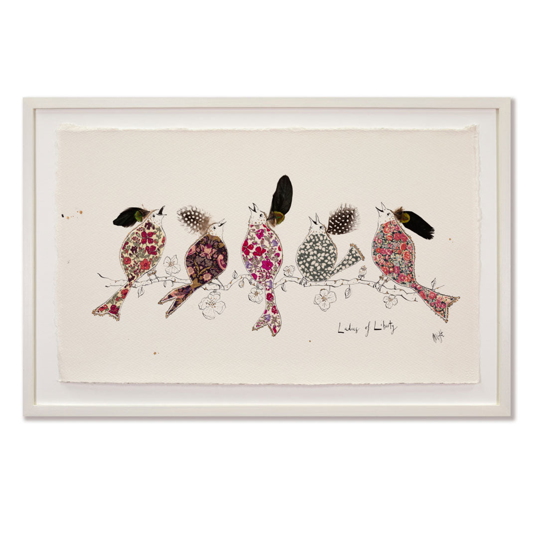 This original artwork has been produced using Indian ink, acrylic paint, fabric and sustainably sourced feathers on heavy-weight acid-free watercolour paper. Signed by Anna and supplied with a Certificate of Authenticity.