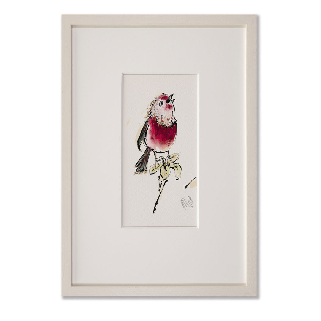 An original artwork of a wonderful wee Pink-Headed Warbler.